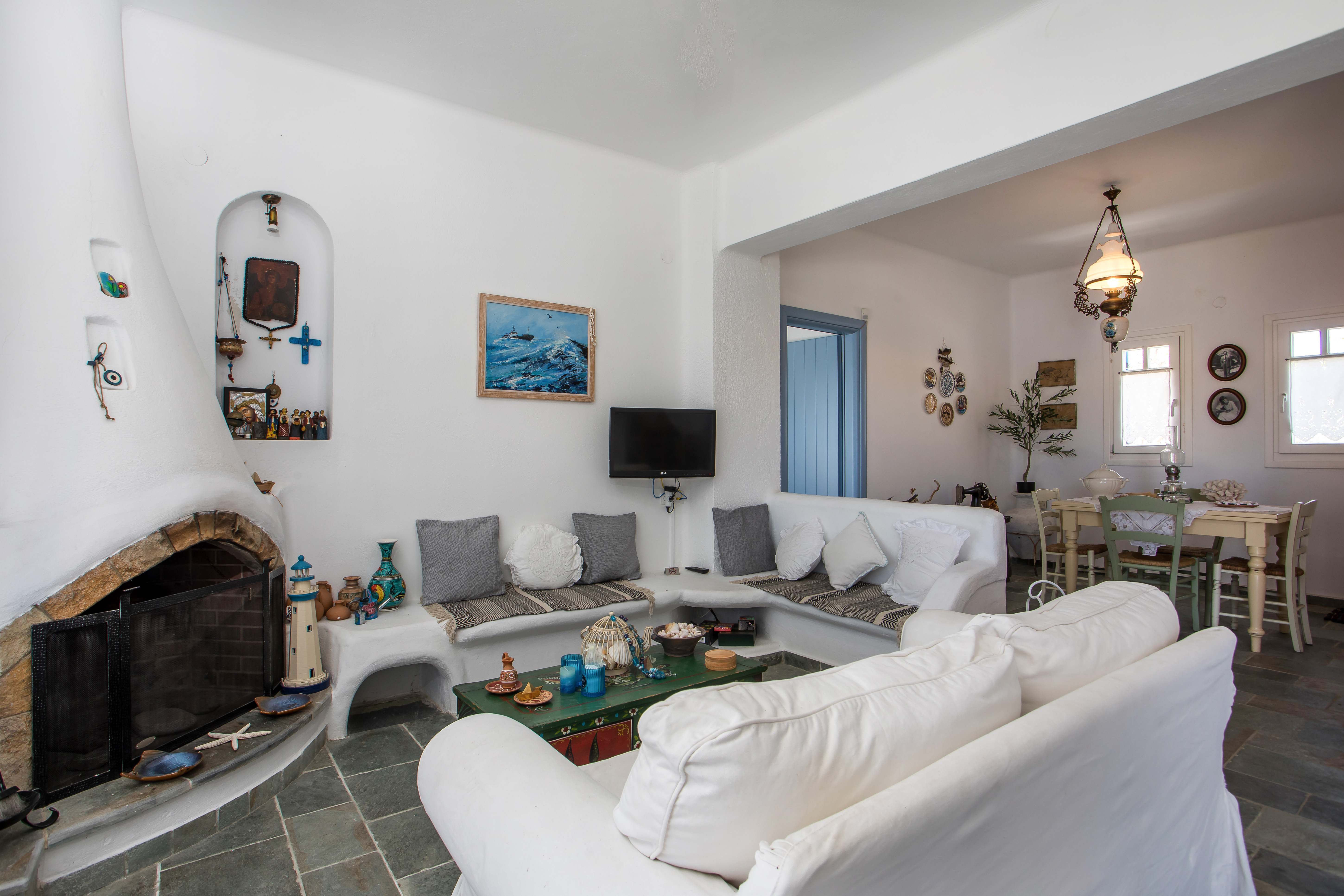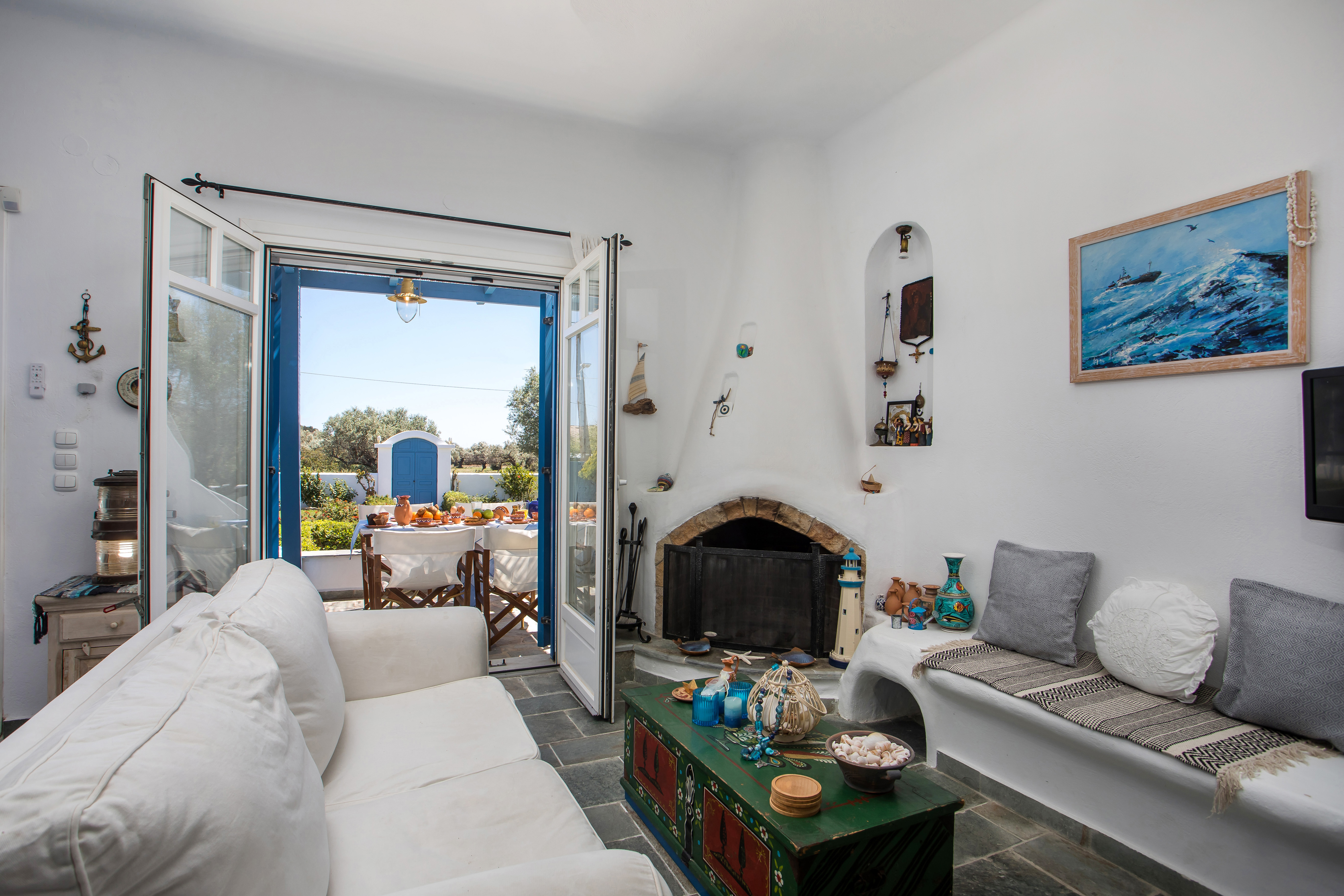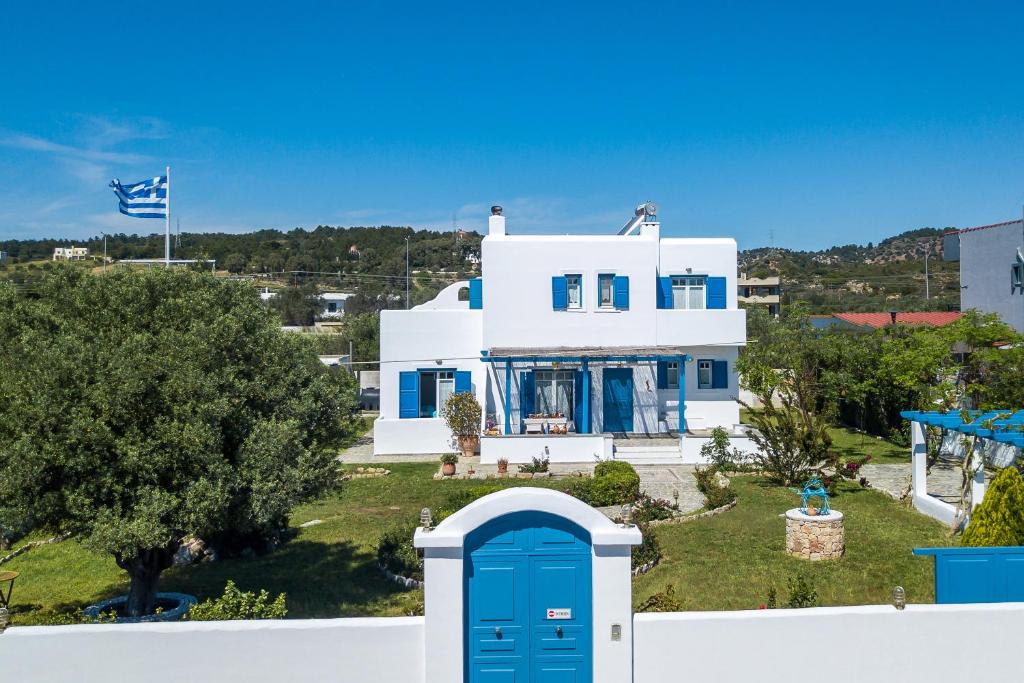 Julia's Greek Coastal Escape, offers ideal family accommodations. With 4 bedrooms, 2 bathrooms, and a spacious garden, it provides ample space for relaxation and play. The serene location, minutes from the beach, ensures family-friendly fun. Whitewashed interiors and blue accents reflect Greece's charm. Safe, secluded, and adorned with handmade décor, it's a haven for family bonding and creating cherished memories.
